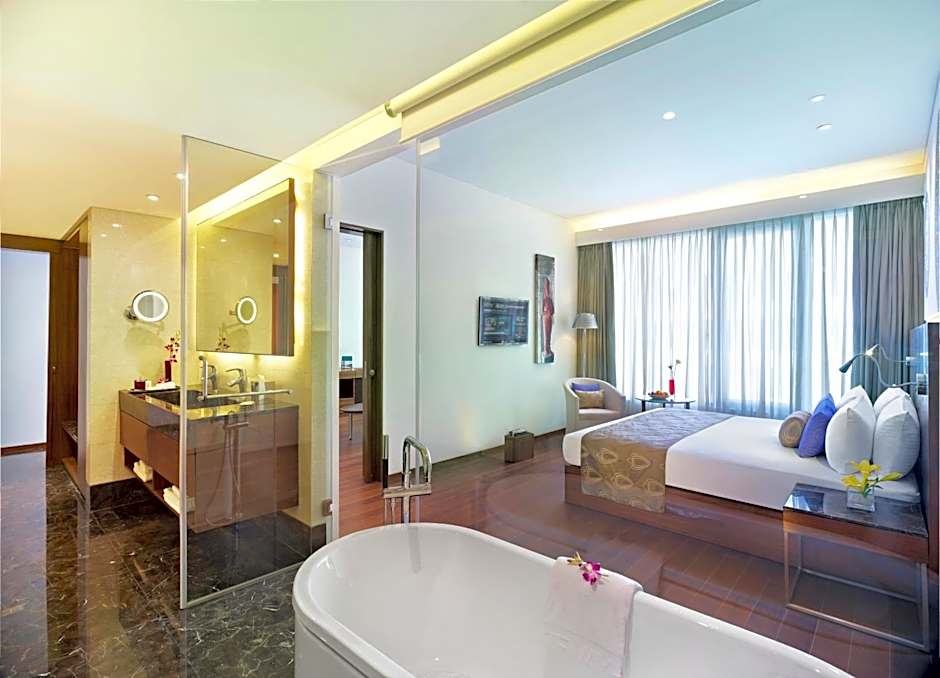 Com 897 avaliações, esta propriedade Vivanta oferece uma base refinada para explorar Chennai, desde os polos de TI ao longo da Expressway até dias à beira da costa, enquanto os hóspedes desfrutam de espreguiçadeiras de praia para momentos de descanso ao sol.